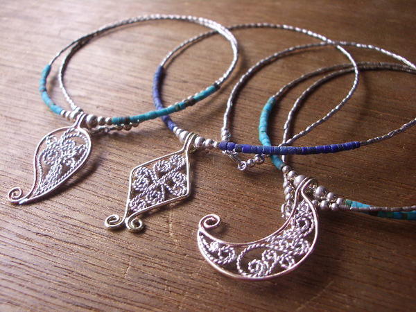 ワックスで原型を彫りおこして鋳造、研磨仕上げしたシルバーパーツに天然石を合わせた作品を作っていました。