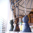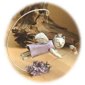 石粉粘土でオブジェを、生地を使って人形やファブリックをデザインから型紙をおこして制作するなど、思うままに色々なジャンルで制作。その中でワイヤーを取り入れるようになり独学でワイヤーの世界へ行くようになりました。