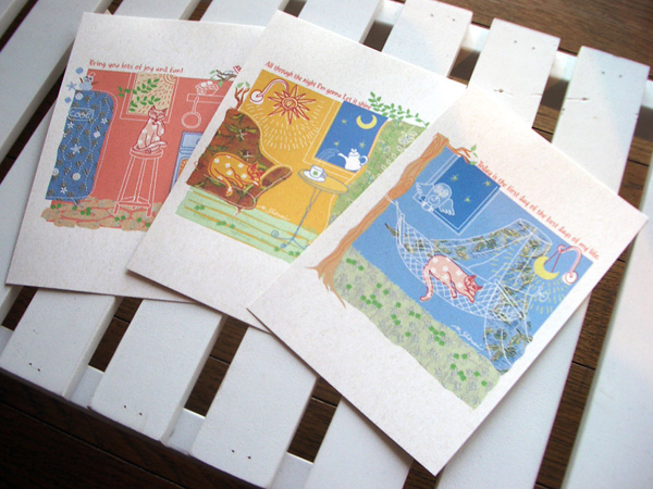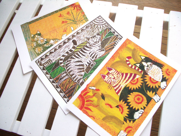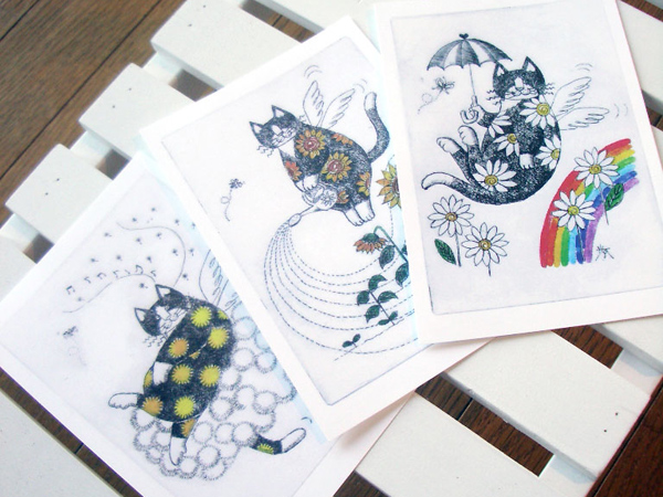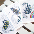 以前制作した版画やイラストを元にグッズとステーショナリー展開を模索。震災後に生まれたKiZuNyaグッズは今後も進化する予定です。